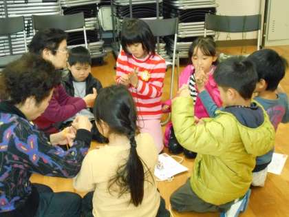 2月16日に,地域の皆様から1年生はむかしの遊びを教えていただきました。