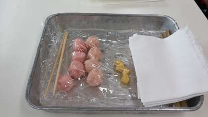 今日は,梅と桜をかたどった和菓子を作りました。