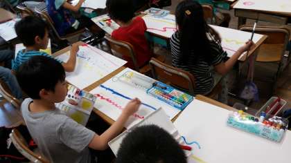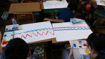 水の混ぜ具合,力の入れ具合でいろいろな線をかいて