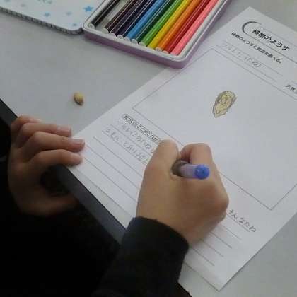 4年生で取り上げられる植物はツルレイシです。種をスケッチして,ポット植えをしました。これから,育っていく様子を記録していきます。