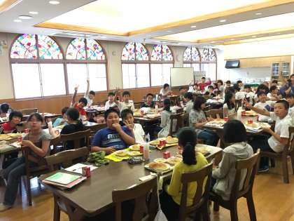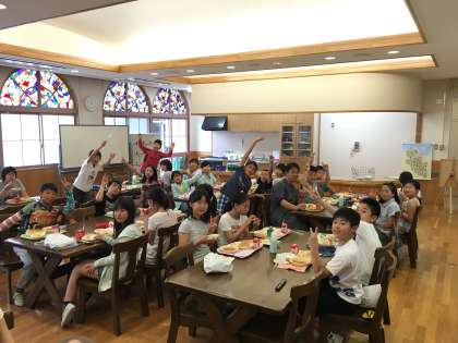 今日はランチルームで給食を食べました。2クラス合同なので,いつも以上に賑やかな給食となりました。