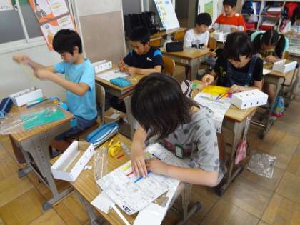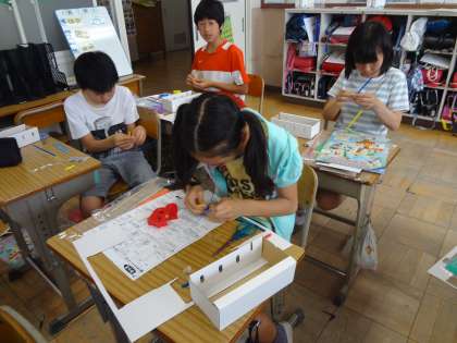 今日から図工科ではクランクとカムの学習に入りました。今日は土台作り。近くの友達と教え合い,協力し合いながら進めていきました。