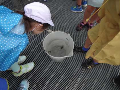 薬品を混ぜながら、ほこりを沈めていく様子、下に砂や砂利を敷いてろ過する濾過池を見学し、水が透明感を増し、きれいになっていく過程を見せてもらいました。