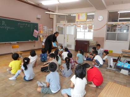 今日の朝読書は英語を交えての読み聞かせでした。ページが進むごとにお話に引き込まれていきました。