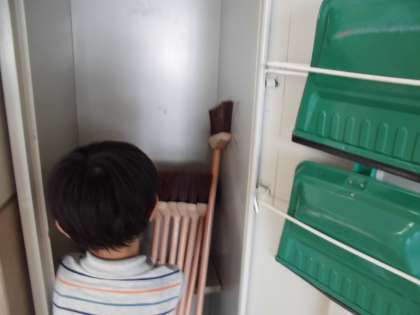 教室の掃除にも慣れてきて,テキパキとできるようになってきました。掃除が終わったら,雑巾やほうきをきちんと並べて片付けています。きれいに片付いていると,次の日も気持ちよく使えますね。