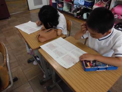 タイムをあげることを目標にする子,1つでも多く九九を覚えて書けるようにすることを目標にする子と,それぞれの目標に向かってがんばっています。