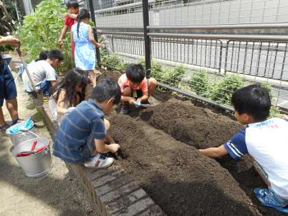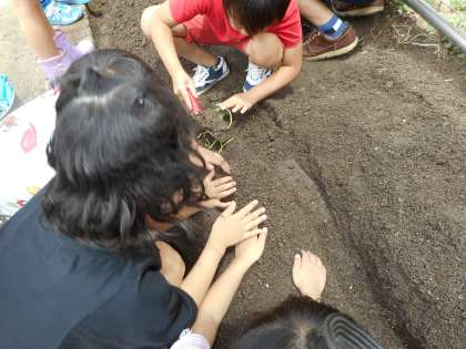 みんなは秋にはおいしいさつまいもがたくさん収穫できることを楽しみにしています。