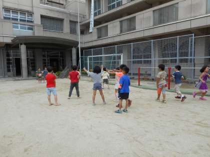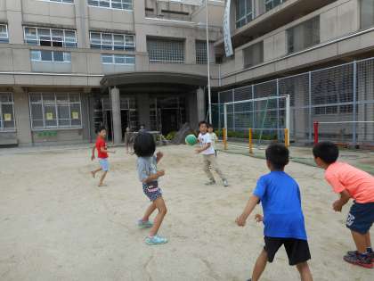 今日は親子ドッジボールの日です。中間休みに「早く行こう!」と声を掛け合う子ど達にどうしたのかと運動場まで行くとなんと1組2組が一緒にドッジボールをしていました。クラスごとではなくて,学年で練習していることがほほえましく思えました。みんなとっても仲良しです。
