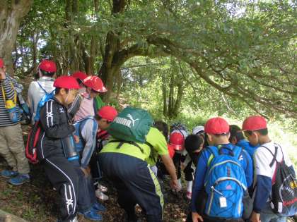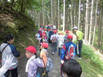 今日のめあての「挑戦」は約4時間の登山でした。険しい坂もありましたが、上に登ると、琵琶湖が見えたり、心地よい風が吹いたり、しんどさも吹っ飛んでしまいました。
