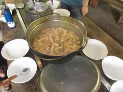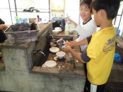今日の昼食は、野外炊事で作る「トン汁」です。2回目なので手際よくできたかんじがします。
