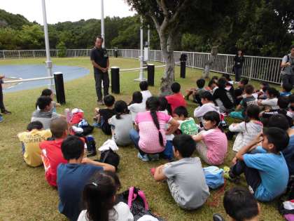 いよいよみさきの家での活動開始です。所員の方のお話を聞いたり、誓いの言葉を言ったりしました。