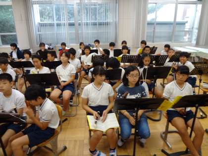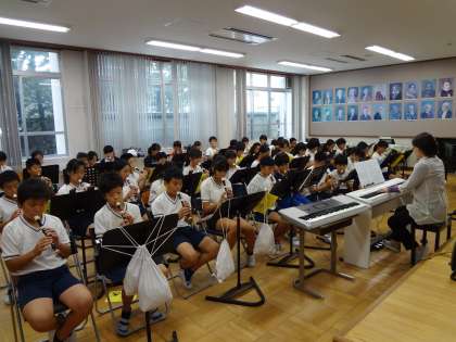 音楽の授業を合同で行いました。映画「ALWAYS 三丁目の夕日」のテーマ曲をリコーダーで演奏しています。パート分けしての演奏も上達してきており,きれいな音色を響かせています。最近,学年での授業が増えています。普段とは違った雰囲気で楽しいです。合間合間のメリハリを大切にしていきたいです。
