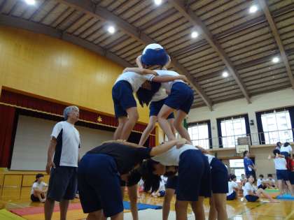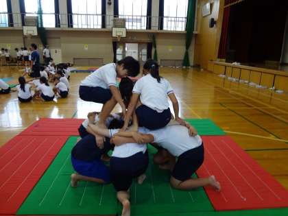 今日は3段タワーと大橋(複合技),全員ピラミッドをしていきました。それぞれで声を掛け合い,3段タワーを立ち上げることができました。全員ピラミッドはもう一息です。