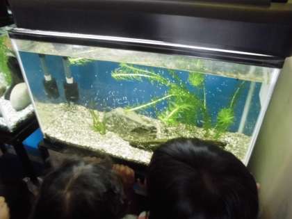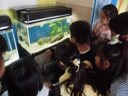1年生は興味しんしんで,登校時や休み時間に,水槽を見つめています。