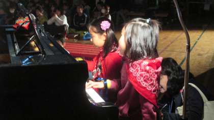 けんかの後は、それぞれのグループが発表しました。はじめは宇宙のお話、その後に合奏の発表をしました。緊張したした顔でしたが、宇宙の子どもたちは迫力のある演技で、歌の子どもたちは一生懸命に音を合わせて合奏ができました。