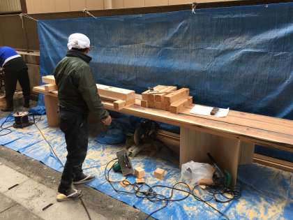 そして,昨日,12月11日には,朝からPTAの方,地域の方,教職員とで新しいステージ作りをしました。材木を切ったり,削ったりと,いろいろと頑張りました。日曜大工程度に思っていた参加者でしたが,なんの,なんの…本格的な大工仕事でした。完成はまだ先ですが,材木のヒノキの香りが漂うなか,寒かったけど,充実した一日でした。
