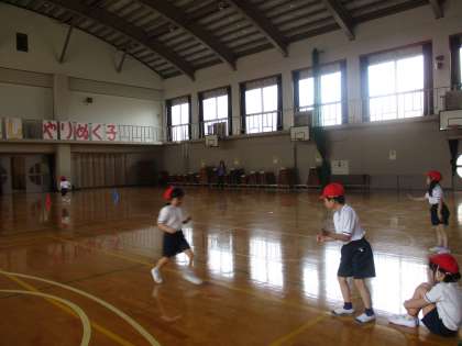 体育の学習では,ストレッチをしたり,並び方の練習をしたり,走ったりして体を動かしています。並び方の練習では,名簿順と背の順の2つの並び方を覚えました。これから並ぶときに速くできるといいなあと思います。