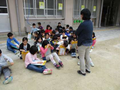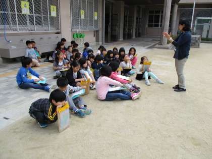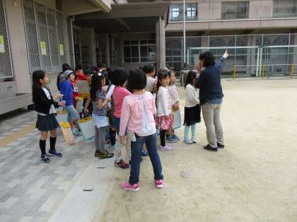 今日は初めて理科の学習をしました。予定通り学校の運動場と光徳公園の春を見つけに行きました。