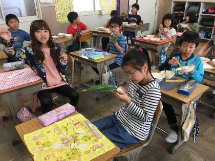 今日は和み献立でした。子どもの日も近いこともあり,ちまきがついていました。甘いお餅にみんな笑顔いっぱいでした!!