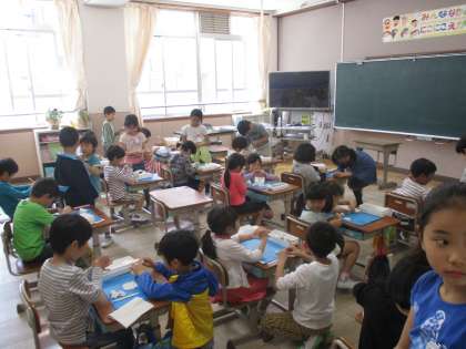 早く終わったグループは,教室へ戻って2年生と一緒に粘土で遊んで待っていました。