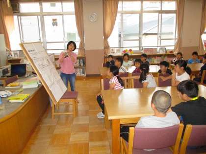 学校司書のの田中先生に図書館の使い方を教えて頂きました。5年生になったみんなに合わせて、年鑑の使い方を紹介して頂きました。色々なことが調べられることを知ることができ、次の調べ学習ですぐに生かしていけそうです。