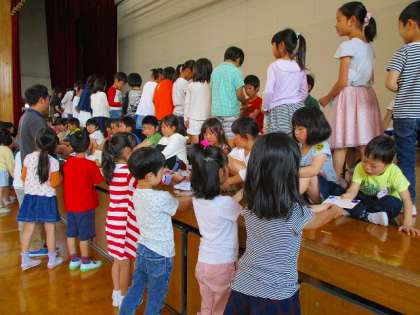 2年生は、自分たちが育てたアサガオの種をプレゼントしました。休み時間には「緊張したけど大切に育ててねって言えたよ」、「にっこり笑顔で渡せたよ」と満足気に教えてくれました。