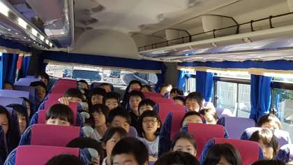 バスの中は,楽しさいっぱいです。