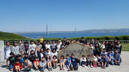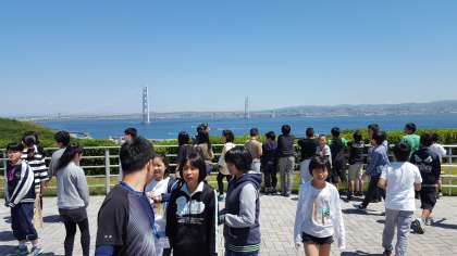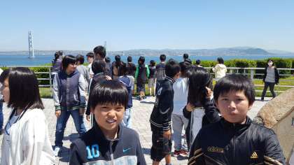 明石海峡大橋の淡路SAでトイレ休憩です。暑くもなく寒くもなく,心地よい風が感じられ,気分は最高です。みんな元気です。