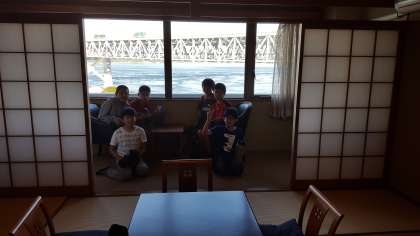 部屋に入ってくつろいでいます。次の入浴の準備に取りかかっています。