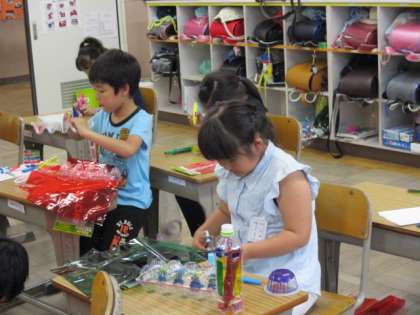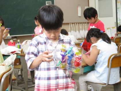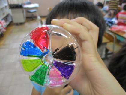 蛍光灯の光に透かしては、作品作りに熱中していました。
