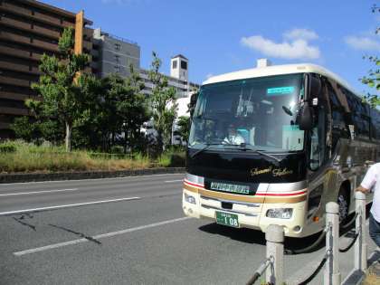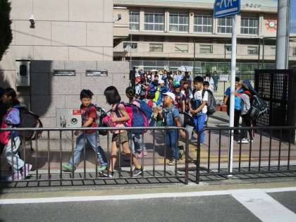 みさきの家に向けて,さわやかな天気と期待に胸を膨らませた笑顔とともに,元気よく4年生児童48名全員が出発しました。いろいろな活動を楽しみにしています。