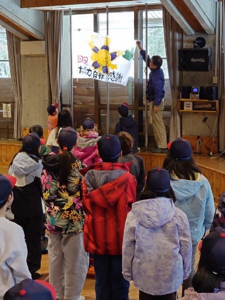 自分たちで作った旗をあげて、いよいよ活動開始です。