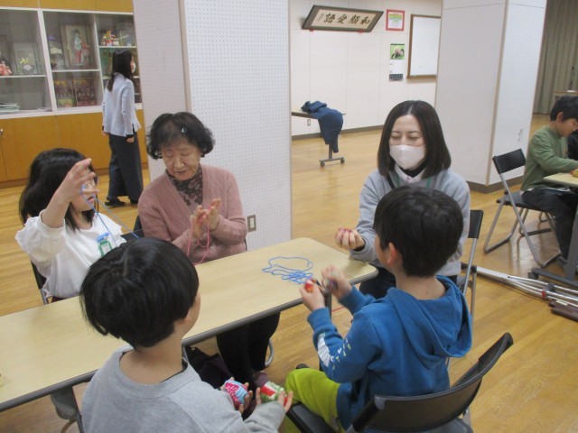 お年寄りの方に、子どもの頃のお話を聞いたり、昔遊びの仕方を教えて頂いたりして、楽しい時間を過ごすことができました。