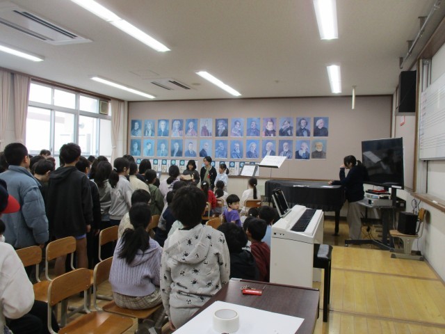 演奏を聴いてもらったり、実物を見たり、さわったりしてもらいました。来年度も楽しく活動できるといいですね。