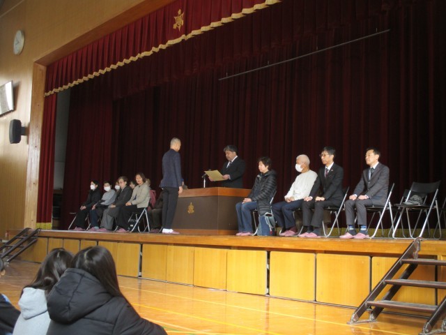 学年の代表からお礼の言葉と全校合唱「はじまりのうた」をプレゼントしました。