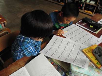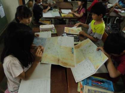 子どもたちは地図記号に興味津々で,地図記号の意味などを見ながら楽しんでいました。