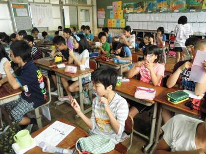 歯と歯の間や奥歯の噛み合わせに,汚れがたまっているのを見て,「意外と汚れが残っているな。」や「やっぱり,歯磨きが十分じゃないな。」と,自分の歯磨きをふり返っていました。