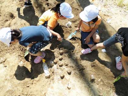 図画工作科「すなや つちと なかよし」の学習で,造形砂場に行き楽しみました。