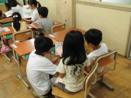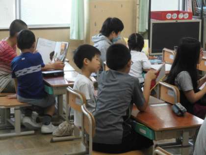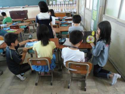 読書週間の取組が続いています。今日は,朝読書の時間に,子どもたちが本の読み聞かせをする「やさしさお届けタイム」を行いました。4〜6年の子どもたちが,1〜3年の子どもたちに読み聞かせをする取組です。