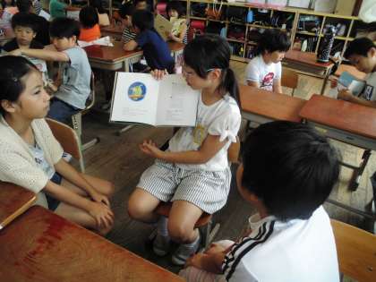 3年生の子が見やすいように,本の見せ方を工夫したり,聞きやすい声で読んだりしていました。