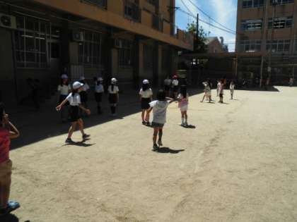 今月の朝会で紹介した「けんパー」も人気です。低学年の子どもたちが「けんパーどんじゃんけん」で遊んでいました。誰かがけんパーを始めると,自然と人が集まってきて,一緒になって遊びます。