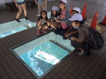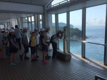 約450m先の展望室にはガラス張りの床があり,世界三大潮流の一つ「鳴門海峡」に発生する「渦潮」を,約45mの高さから,覗き込むことが出来ます。