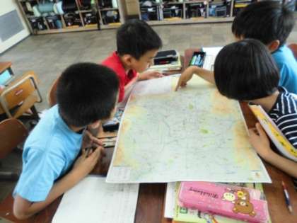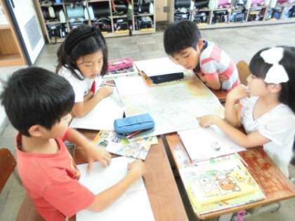 今日は,京都市の地図を見て,行ったことがある場所や知っている場所について交流しました。