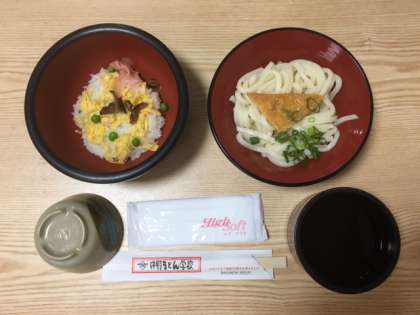 本場の讃岐うどんとちらし寿司です。金毘羅さんから降りてきたところなので,とってもおなかが空いていることでしょう。