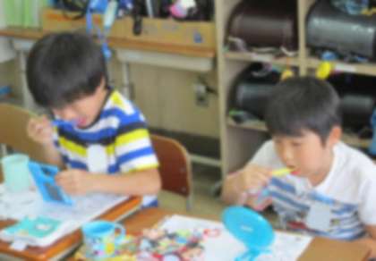 その後,みんなで磨き残しの部分を覚えるために用紙に記入し,その磨き残しの部分を中心に歯磨きをしていきました。