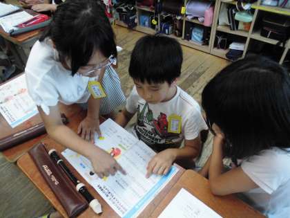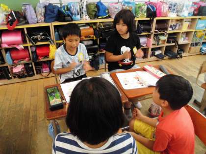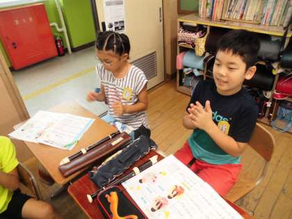 班で練習をしました。みんなでリズムをとるために,「タン,ウン,タン,ウン」というように声に合わせていました。