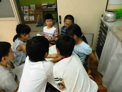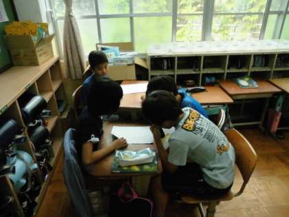 国語科で委員会ごとに活動報告書を書き,発表しました。事実と考えを区別して書く方法を学びながら書きました。
