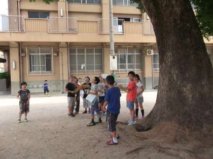 くすのき学習で,カラスを観察しにいきました。なかなか,カラスが見つからず,始めはカラスの姿がなく,「昼間はいないんじゃない。」「カラスも暑いから涼しい場所にいるのかも。」「人がたくさんいるから,警戒しているのかも。」など子どもたちなりにカラスがいない理由を考え始めました。そんなことを言い合っていると,カラスが一羽現れました。その時のみんなの顔は,笑顔に溢れ,一生懸命カラスを観察していました。