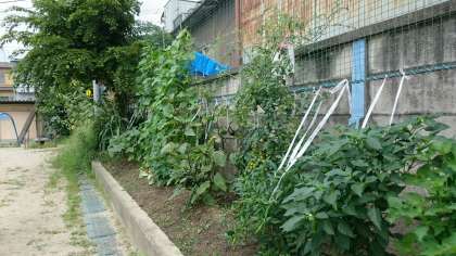 学校で,教職員だけでなく,畑で野菜も子どもたちを待っています。