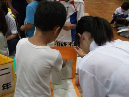 2年生の子どもたちは,自分が夏休みに取り組んだ『サマーチャレンジ』の作品を一生懸命に中学生のお兄さんやお姉さんに紹介しました。
